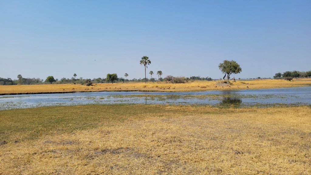 This is a vast inland river system in northern Botswana, which forms a grassy expance. It floods in the rainy season to cover much of the area and dries up so only the river channels remain in the dry season, bringing the animals in for water