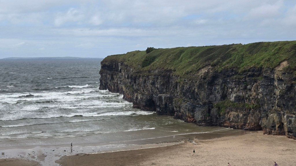 Ballybunion is a seaside town with beautiful beaches, cliffs, and the remains of a castle from 1200. There is a walking path along the top of the cliffs that weaves down to the sandy beaches, both paved and through the seagrass.