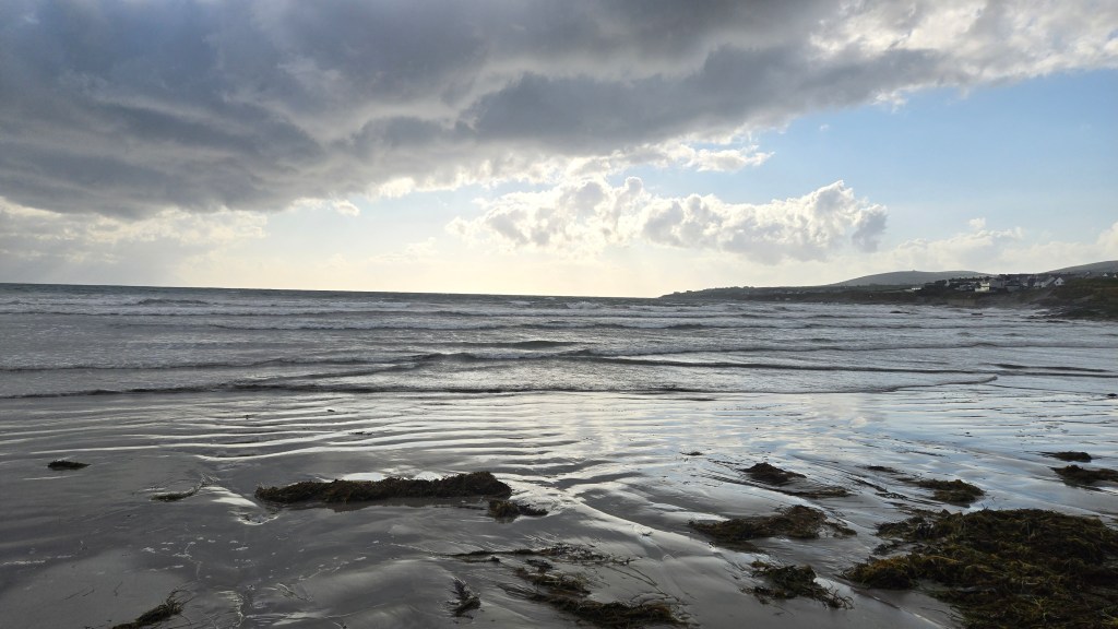 Ballyheigue, another seaside town with long beaches and small islands that danced in the clouds. At both beaches swimmers were in the water, hardy souls at 16 degrees C and they appeared to be enjoying it!