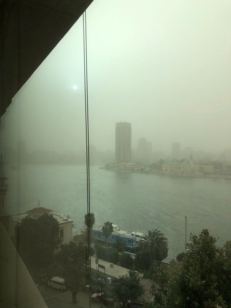 The Nile in early morning, beautiful and at it’s best. Late afternoon when a Sahara desert sand storm had rolled in.