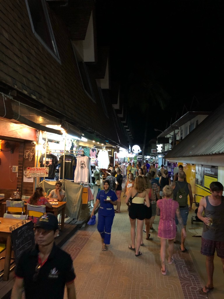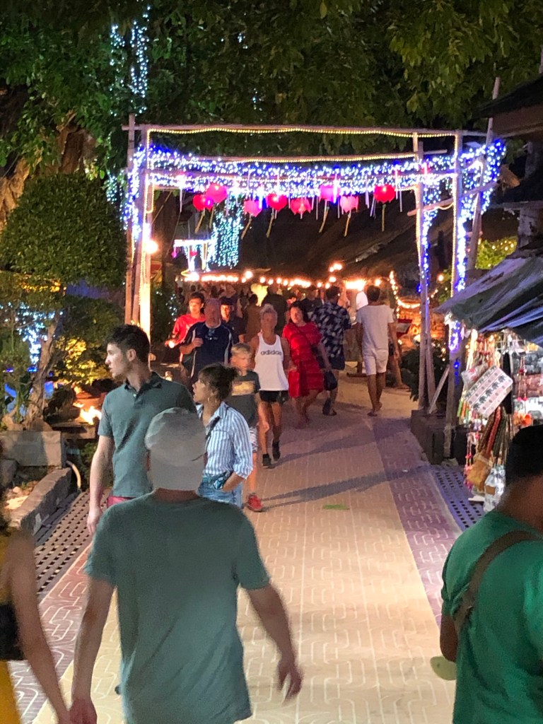 Phi Phi’s infrastructure was wiped out by a tsunami in 2004. Much of what is built now is built on top of the rubble so it’s beautiful and also not so beautiful as much of the trashy rubble is still around.