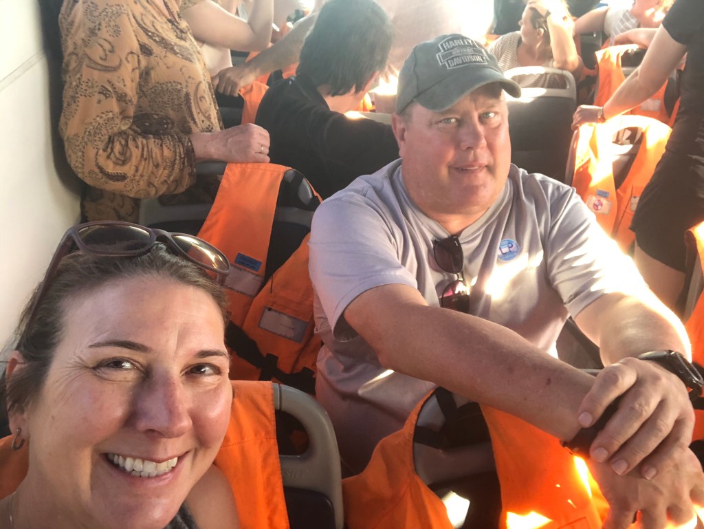 The boat was super crowded and overweight, when we hit the open ocean the waves were so big and we were hitting the swells so hard the the impact was really rough, the water sprayed (saying it lightly) up and into the boat so we and everyone else were soaked. At one point I thought about getting out my snorkel mash to keep the salt water out of my eyes.