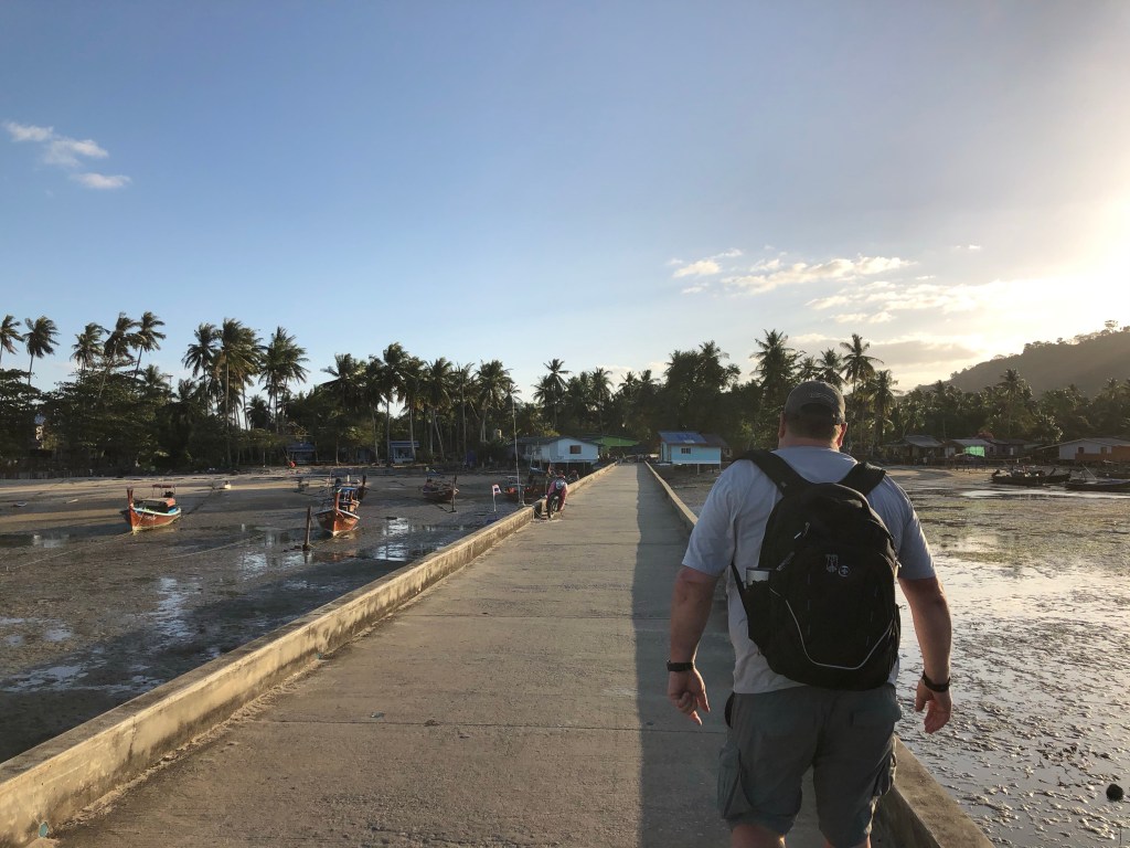 Our transfer was at Koh Lanta. The pier there is made of large tree branches and jets out of a shoreline building. While we were there, anywhere from 20 to 70 people were standing on the pier along with their luggage. It didn’t seem like that pier should have held up but it was actually pretty stable.