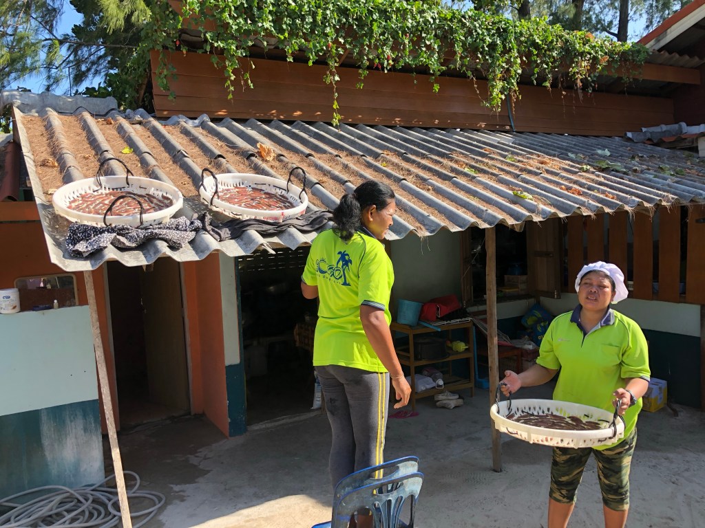 Great tropical fruits here in southern Thailand. Today’s pick is longan a member of the soapberry family. In the US we know lychee which is in the same family. Longan looks like an eyeball with opaque flesh around a hard seed. About the size of a large marble with a tough skin that “breaks” when you bit into the fruit.